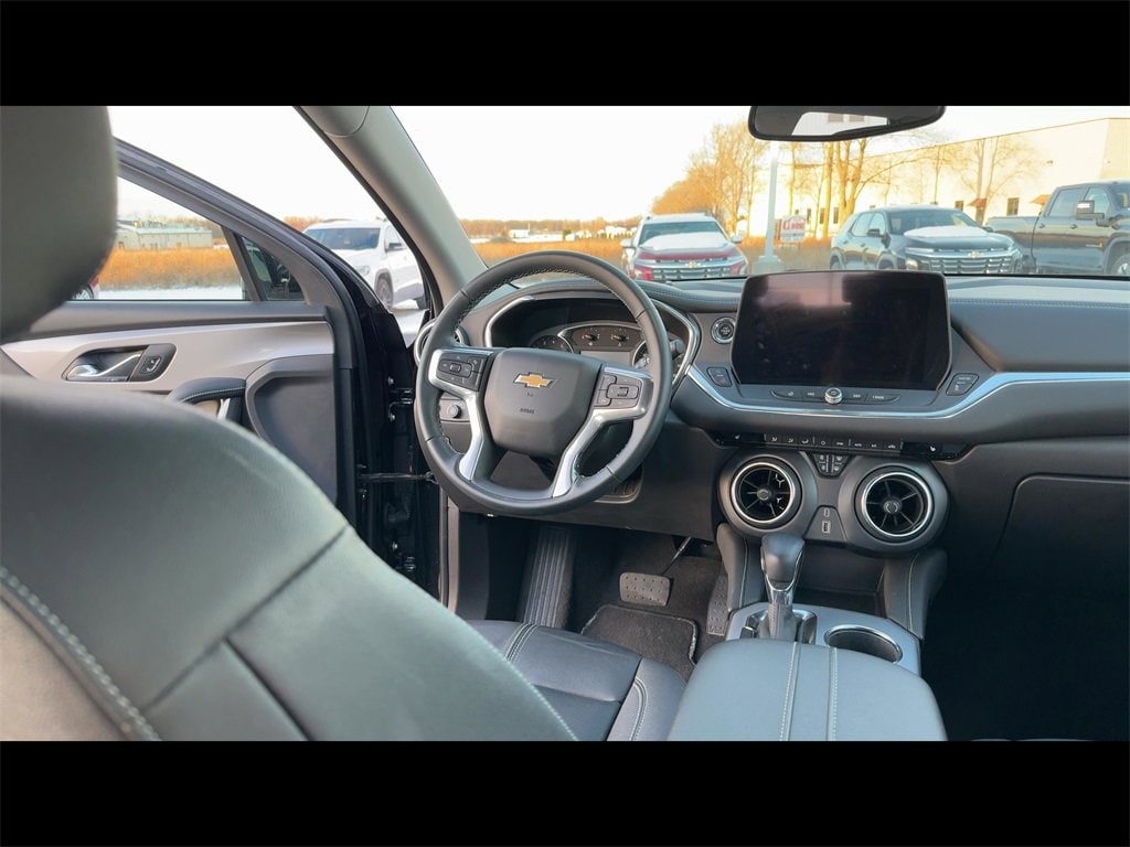 New Price! Clean CARFAX.Black 2024 Chevrolet Blazer LT 4D Sport Utility 2.0L Turbocharged 9-Speed Automatic with Overdrive FWD170 Amp Alternator, 3.47 Final Drive Axle Ratio, 4-Wheel Disc Brakes, 6 Speakers, 6-Speaker Audio System Feature, 6-Way Power Front Passenger Seat Adjuster, 8-Way Power Driver Seat Adjuster, ABS brakes, Air Conditioning, Alloy wheels, AM/FM radio: SiriusXM with 360L, Apple CarPlay/Android Auto, Auto High-beam Headlights, Auto-dimming door mirrors, Auto-dimming Rear-View mirror, Automatic temperature control, Black Roof-Mounted Side Rails, Brake assist, Bumpers: body-color, Child-Seat-Sensing Airbag, Compass, Delay-off headlights, Driver Confidence Package, Driver door bin, Driver vanity mirror, Dual front impact airbags, Dual front side impact airbags, Electronic Stability Control, Emergency communication system: OnStar and Chevrolet connected services capable, Four wheel independent suspension, Front & Rear Black Bowties, Front anti-roll bar, Front Bucket Seats, Front Center Armrest, Front dual zone A/C, Front reading lights, Fully automatic headlights, Garage door transmitter, Heated door mirrors, Heated Driver & Front Passenger Seats, Heated front seats, Illuminated entry, Inside Rear-View Auto-Dimming Mirror, Knee airbag, Lane Change Alert w/Side Blind Zone Alert, Leather Shift Knob, Leather steering wheel, Low tire pressure warning, Midnight/Sport Edition, Occupant sensing airbag, Outside Heated Power-Adjustable Body-Color Mirrors, Outside temperature display, Overhead airbag, Overhead console, Panic alarm, Passenger door bin, Passenger vanity mirror, Perforated Leather-Appointed Seat Trim, Power door mirrors, Power Driver Lumbar Control, Power driver seat, Power Liftgate, Power passenger seat, Power steering, Power windows, Preferred Equipment Group 3LT, Premium audio system: Chevrolet Infotainment 3 Plus, Radio data system, Radio: Chevrolet Infotainment 3 Plus System, Rear anti-roll bar, Rear Cross Traffic Alert, Rear Park Assist w/Audible Warning, Rear Power Programmable Liftgate, Rear reading lights, Rear seat center armrest, Rear window defroster, Rear window wiper, Remote keyless entry, Ride & Handling Suspension, Security system, SiriusXM w/360L, Speed control, Speed-sensing steering, Split folding rear seat, Spoiler, Steering wheel mounted audio controls, Tachometer, Telescoping steering wheel, Tilt steering wheel, Traction control, Trip computer, Turn signal indicator mirrors, Universal Home Remote, Variably intermittent wipers, Voltmeter, Wheels: 18 Grazen Metallic Aluminum, Wheels: 18 High Gloss Black Painted Aluminum.