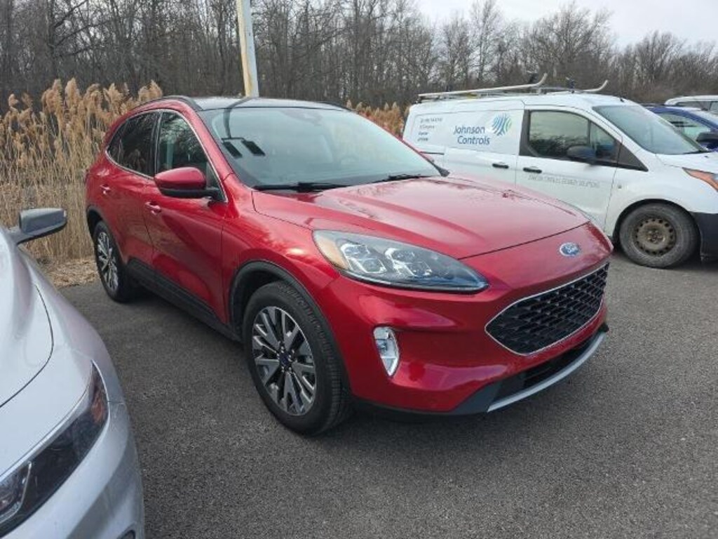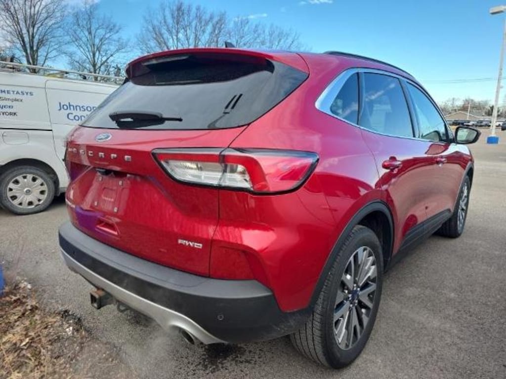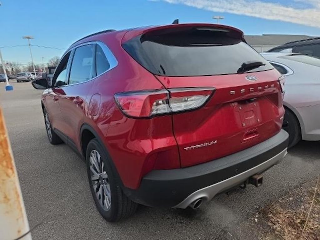 Recent Arrival! Odometer is 4760 miles below market average! CARFAX One-Owner. Red Metallic 2022 Ford Escape Titanium PANORAMIC VISTA ROO EcoBoost 2.0L I4 GTDi DOHC Turbocharged VCT 4D Sport Utility 8-Speed Automatic AWD We are open and ready to serve you! Shop safely and conveniently from the comfort of your home. Contact us today to schedule your home delivery ! Baumann Ford Oregon Toledo Ohio Perrysburg Bowling Green Rossford Curtice Oak Harbor Woodville Monroe Michigan Temperance Erie Repair Facility Body Shop Collision Center Parts Service New Used Leasing Low Payment Low Payments Ford Motorcars Automobile Auto Cars Trucks SUV Sales. FULLY DETAILED, AWD, Black Roof-Rack Side Rails, Heated ActiveX Trimmed Front Sport Contour Bucket Seats, Panoramic Vista Roof, Wheels: 19 Machined-Face Aluminum, 3.47 Axle Ratio, 4-Wheel Disc Brakes, 4G LTE Wi-Fi Hotspot Removal, 6 Speakers, ABS brakes, Air Conditioning, Alloy wheels, AM/FM radio: SiriusXM, AM/FM Stereo, Auto High-beam Headlights, Auto-dimming Rear-View mirror, Automatic temperature control, Brake assist, Bumpers: body-color, Class II Trailer Tow Package, Compass, Delay-off headlights, Driver door bin, Driver vanity mirror, Dual front impact airbags, Dual front side impact airbags, Easy Access Cargo Shade, Electronic Stability Control, Emergency communication system: SYNC 3 911 Assist, Equipment Group 401A, Exterior Parking Camera Rear, FordPass Connect, Four wheel independent suspension, Front & Rear Floor Liners w/Carpet Mats, Front anti-roll bar, Front Bucket Seats, Front Center Armrest, Front dual zone A/C, Front fog lights, Front reading lights, Fully automatic headlights, Garage door transmitter, Hands-Free Foot-Activated Liftgate Feature Removal, Heated door mirrors, Heated front seats, Heated steering wheel, Illuminated entry, Knee airbag, Low tire pressure warning, Memory seat, Navigation System, Occupant sensing airbag, Outside temperature display, Overhead airbag, Overhead console, Panic alarm, Passenger door bin, Passenger vanity mirror, Power door mirrors, Power driver seat, Power Liftgate, Power passenger seat, Power steering, Power windows, Radio data system, Rain sensing wipers, Rear anti-roll bar, Rear reading lights, Rear seat center armrest, Rear window defroster, Rear window wiper, Remote keyless entry, Roof rack: rails only, Security system, Speed control, Speed-sensing steering, Speed-Sensitive Wipers, Split folding rear seat, Spoiler, Steering wheel mounted audio controls, SYNC 3 Communications & Entertainment System, Tachomet
